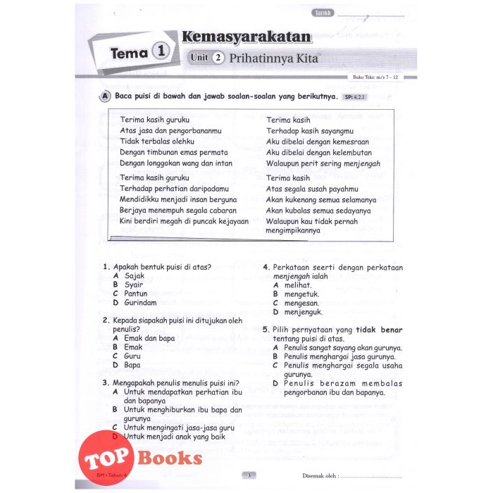 Pantun Menghargai Jasa Ibu Bapa - Topbooks Cemerlang Kunci Rampaian Bahasa Melayu Tahun 4 Kssr Semakan